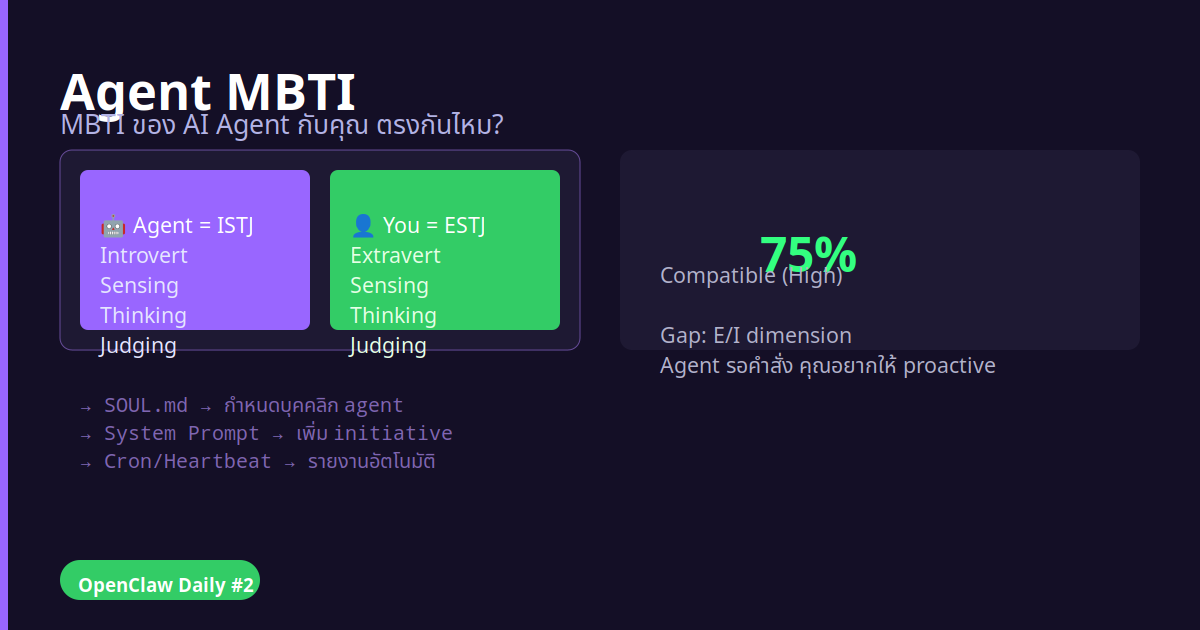 ทำไมต้องรู้? เพราะ MBTI ไม่ได้ใช้แค่กับคน — AI agent ก็มี “บุคคลิก” เหมือนกัน ขึ้นอยู่กับว่าเขียน prompt ยังไง, ตั้งค่าอะไร