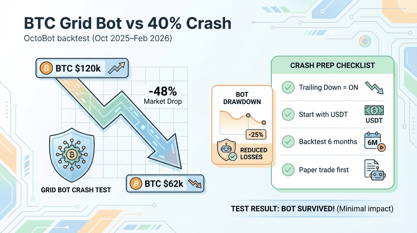 BTC Grid Bot ผ่านช่วงร่วง 40%: Backtest ด้วย OctoBot บน Mac mini (Docker) แล้วข้อมูลบอกอะไร?