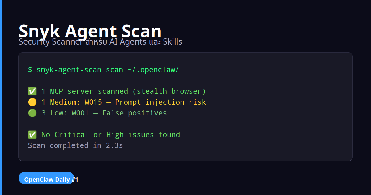 OpenClaw Skill Review — Snyk Agent Scan: สแกน AI Agent ของคุณว่าปลอดภัยไหม ใน 1 คำสั่ง